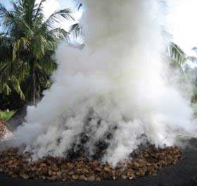 椰子殼的傳統炭坑制造法對環境不利