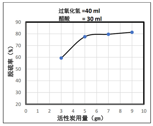 圖1:所用樣品中脫硫百分比與活性炭含量之間的關系。