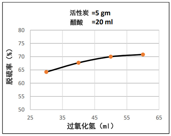 圖2:所用樣品中脫硫百分比與H2O2含量之間的關系。