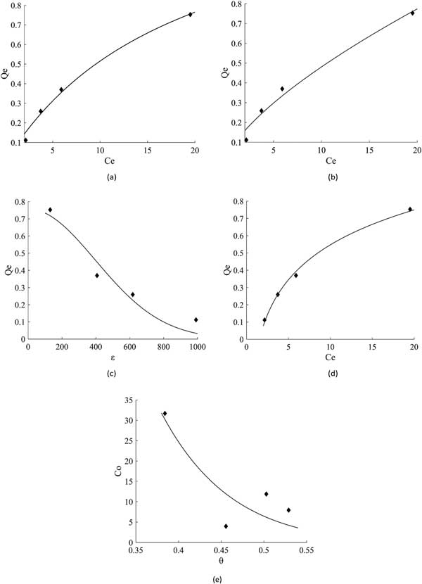 氯丙醇化合物的吸附是由于活性炭表面的羧基與3-MCPD的氯化物位點發生酯化,不是羥基位點或酯位點。因此,等溫線模型是用3-MCPD溶液作為被吸附物溶液的吸附來測量的。各等溫線模型的線性回歸圖見圖3,從結果來看Langmuir、Freundlich、Dubinin-Raduskevich和Temkin等溫線模型具有較高的R2值,Temkin模型較高,因此是適合3-MCPD吸附的模型。