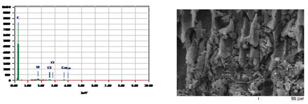 圖1:活性炭的礦物質(zhì)含量降低,并且在活性炭表面有更大、更粗糙的孔隙。