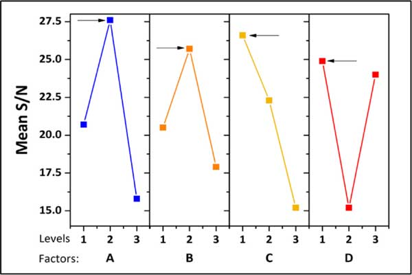 環己烷和苯在測試活性炭上的二元吸附,有相應的穿透曲線;钚蕴縀4對二元混合物中的兩種碳氫化合物顯示出最高的吸附能力。盡管樣品E4的苯吸附容量較高,但其選擇性低于其他活性炭(E9>E5>E6>E3>E1>E8>E2>E4>E7)。所有活性炭都優先吸附苯,但樣品E1、E4、E5和E8顯示出很高的苯吸附能力。填充床的小數容量比在單組分氣體吸附更大的二進制吸附。當使用低吸附物濃度時填充床的吸附效率增加。表明活性炭材料可以更容易、更有效地吸附傳質區中的碳氫化合物。在二元混合物分離中,對活性炭苯吸附能力影響最大的因素是:活化劑、浸漬比和物理活化時間。吸附劑E1、E4、E5、E6和E8顯示出很好的信噪比。圖3說明了在測試條件下制備活性炭的平均S/N比。總體而言,制備具有高吸附能力的活性炭以從二元混合物中分離苯的合適條件已驗證。