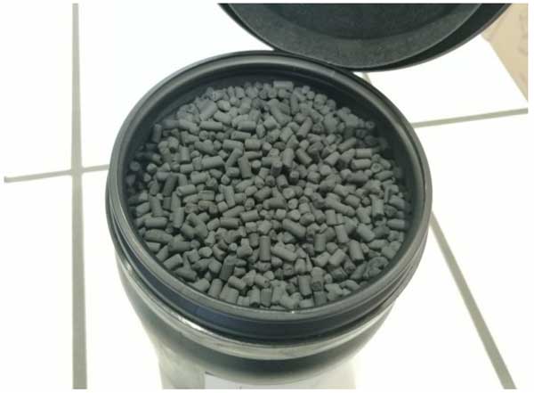 根據直接使用瓶裝真實氣體所獲得的結果,包括列出的催化劑毒物,這會導致催化劑快速降解,因此在第一個反應器的上游安裝了活性炭過濾器。為此,將金屬氧化物浸漬的活性炭顆粒添加到氣體混合站。這些顆粒專門開發用于從缺氧氣流(例如CO2、N2、CO和H2)中去除硫化氫、有機硫醇、二氧化硫、硫化羰和氮氧化物。它們的銅含量為7%(以CuO計),直徑為3mm,長度為7mm(圖3)。將總共約300毫升的這些顆粒活性炭加入氣體混合站。