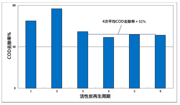 圖2:COD去除百分比與活性炭再生次數的關系圖。