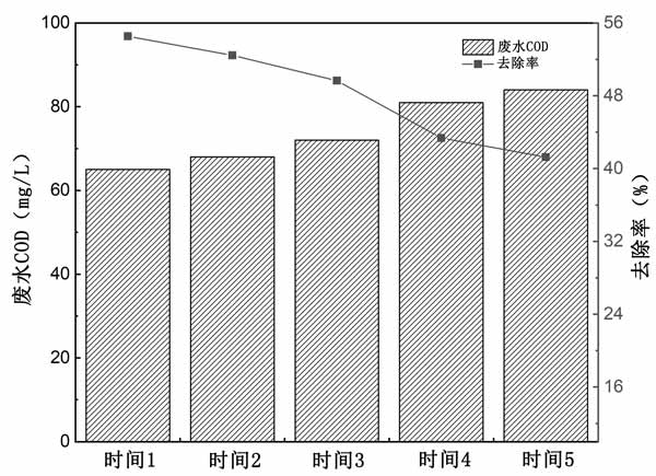為了評(píng)估活性炭的可重復(fù)使用性,對(duì)活性炭進(jìn)行了吸附-解吸實(shí)驗(yàn)。經(jīng)過四個(gè)吸附-解吸循環(huán)后,活性炭吸附對(duì)焦化廢水中COD的吸附效率僅降低了約10%(圖3),表明活性炭具有良好的可重復(fù)使用性。此外,使用NaOH作為再生劑的方法具有成本效益高的優(yōu)點(diǎn)。總之,這些表明本研究中生產(chǎn)的活性炭在實(shí)際廢水處理中具有巨大的應(yīng)用潛力。