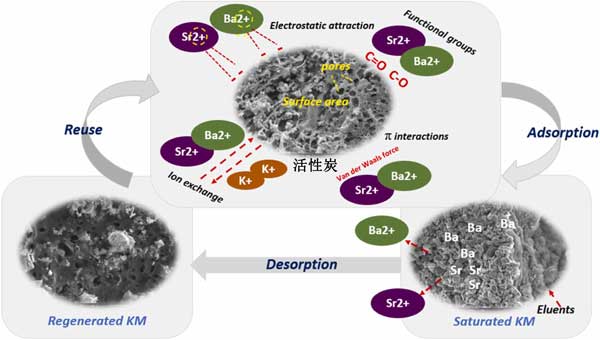 石油和天然氣工業的快速擴張導致含污染物的廢水總量激增,其中鍶、鋇等重金屬離子以及染料等復雜污染物對生態系統和人類健康構成嚴重威脅。尤其在天然氣開采過程中產生的采出水中,這些目標金屬常與鈉、鐵、鎂、鉀等離子形成高濃度共存體系。相較于混凝沉淀、膜過濾和高級氧化工藝等需要復雜操作且成本較高的處理技術,活性炭吸附法憑借其表面高效吸附污染物的特性脫穎而出。該技術不僅操作簡單、適應性強,在處理多元離子體系時更展現出顯著的成本效益優勢。