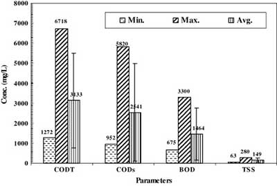 亞麻廢水的理化特性如圖1所示。結(jié)果表明,化學(xué)需氧量(COD)為127〜6718 mgO 2 / l,平均值為3133 mg / L。此外,BOD指示的平均可生物降解物質(zhì)為1464mg / L。平均BOD / COD比值為0.467,表明生物降解難度較大。此外,總懸浮物達(dá)到149 毫克/升。
