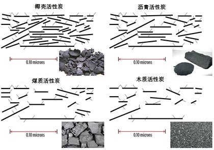 圖1.顯示其相關孔結構的不同類型活性炭的一般示意圖。