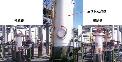 活性炭可以由椰子殼,褐煤,煤,瀝青和木質(zhì)材料等制成。源將確定其可吸附的污染物的吸附容量和尺寸分布。就配置而言,活性炭可以是粉末或顆粒狀的。活性炭過濾系統(tǒng)通常用于除去雜質(zhì),使得胺溶液可以適當?shù)赜糜谟行コ廴疚铩H绻麤]有從胺溶液中適當?shù)爻ルs質(zhì),則在工廠中可能發(fā)生起泡,腐蝕和其它問題,導致相當大的負面技術和經(jīng)濟效果。通常,瀝青類型的活性炭被選擇用于胺單元,因為其在碳晶粒內(nèi)具有小,中和大孔的平衡。這種分布通常最適合具有廣泛分子尺寸污染物分布的胺流。典型的活性炭過濾系統(tǒng)如圖2所示。