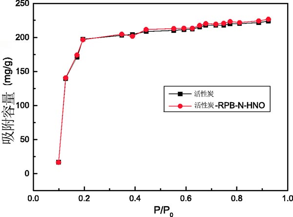 活性炭在高重力環境中的熱化合物改性。將100g活性炭作為填料層,并且以900r/min的速度操作300分鐘,其中99%氮氣從入口端口通過。得到的活性炭表示為活性炭-RPB-N。原始活性炭和活性炭-RPB-N用1mol·L-1HNO 3在70攝氏度,流速40L·min-1,轉速36.3Hz下進行改性。在該處理之后,在用去離子水沖洗后,將兩個樣品在真空烘箱中在110攝氏度下干燥24小時,并分別表示為活性炭-RPB-HNO和活性炭-RPB-N-HNO。