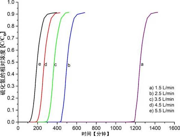 通過使用經(jīng)受不同操作參數(shù)的混合氣體測(cè)試活性炭性能,例如流速,所用長(zhǎng)度床,所用氣體類型和活性炭。為了確定吸附容量,穿透點(diǎn)和飽和點(diǎn)分別表示硫化氫濃度何時(shí)在出口流處達(dá)到1ppm和1000ppm。此外,數(shù)據(jù)表示為重復(fù)三次的平均結(jié)果。