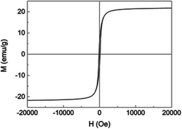 活性炭復合纖維材料在室溫下-20000至20000 Oe范圍內的磁滯回線在圖3顯示,其形狀是典型的S曲線,對應于超順磁行為。包括飽和磁化強度Ms,磁矯頑力HC和剩余磁化強度Mr的磁特性。活性炭復合材料的Ms低于塊狀Fe3 O4,這可以通過活性炭載入Fe3O4納米粒子來解釋,這與發現的結果非常一致。