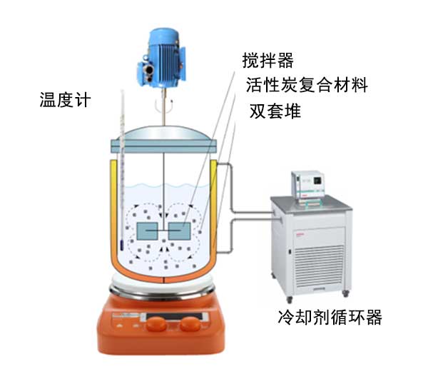 間歇式反應器系統已經在實驗室規模中用于進行水中砷的吸附和去除過程。根據圖3,已經使用的系統由雙頭反應器組成,其內部容積為300cc,這是一種吸附反應的環境。在吸附過程中,循環器已用于轉移所需溫度并保持試劑流入反應器的第二壁。該反應器配備有機械攪拌器系統,該系統可以在不同時期控制攪拌器的速度。在攪拌棒的末端,兩個平行葉片以高于反應器底部1厘米的角度放置,該反應器由聚合物和中性材料制成,目的是混合廢水和在吸附過程中使用在容器末端不吸附沉積的活性炭。該系統提供了研究吸附過程中混合速度的機會。為了提供所需的加熱,也可以使用配備有電加熱器的磁力攪拌器。兩種活性炭吸附劑和石墨烯/活性炭復合材料的砷吸附工藝已經在45°C水中用含有三價砷的200cc廢水用700rpm的磨料攪拌器進行,其結果是相互比較。這些過程在不同時間和不同濃度的水中砷和不同濃度的活性炭和pH值下重復進行。