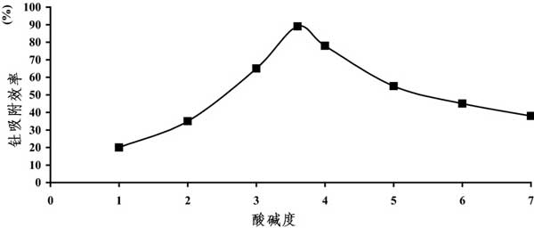 圖2:用三苯基氧化膦改性活性炭對酸堿度對釷吸附效率的影響。
