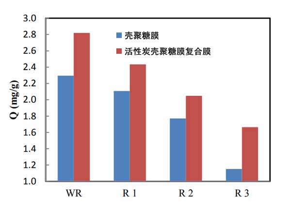 圖3:殼聚糖膜和活性炭殼聚糖復(fù)合膜的再生效率。
