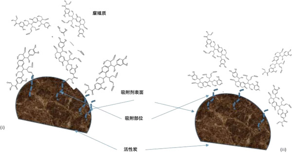 廢水中不同類型的腐殖質會改變化學和物理特性,因此,它們與不同類型的吸附劑相反地相互作用。關于吸附劑的孔隙率,活性炭主要是微孔的,具有非常大的表面積。β-FeOOH的情況尚不清楚,因為不同的方法給出的結果不同。但是,鐵化合物上有可能存在微孔。與活性炭相比,可用于AAFS和β-FeOOH的吸附面積小。但是,被吸附物的大小可能使其無法穿透微孔,因此限制了對活性炭的吸附,但是活性炭的孔隙率是可控的所以能解決這方面問題。