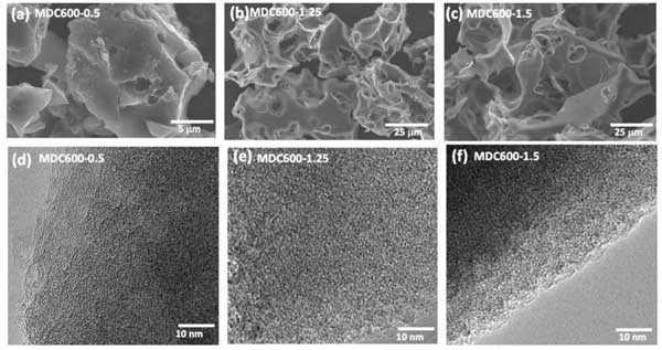 活性炭吸附劑是通過兩步熱解過程制備的,該過程包括將奶粉轉(zhuǎn)化為生物炭,然后在高溫下用堿活化。同時(shí)還增加了細(xì)微的差別,即涉及一種輔助化學(xué)或物理試劑,可在材料上蝕刻出納米級(jí)的孔隙。牛奶由多種蛋白質(zhì),脂肪和礦物質(zhì)組成。有特別地酪蛋白蛋白(一種磷酸蛋白家族)以膠束的形式存在于牛奶中,通過疏水相互作用,氫鍵結(jié)合以及膠束核心內(nèi)磷酸鈣納米簇的橋接而在內(nèi)部得到穩(wěn)定。圖1正是這些磷酸鈣-酪蛋白蛋白簇充當(dāng)碳的3D結(jié)構(gòu)發(fā)展的模板,因?yàn)樗鼈冊跓峤獾某跏茧A段得以保存,在此階段奶粉被加熱到400°C,并防止活性炭內(nèi)結(jié)構(gòu)塌陷。在第二個(gè)活化步驟中,堿KOH與碳反應(yīng)生成碳酸鉀,碳酸鉀分解并留下富氮和富氧的微孔。所得的活性炭顯示出有效且可逆地捕集二氧化碳,同時(shí)排除了水蒸氣。