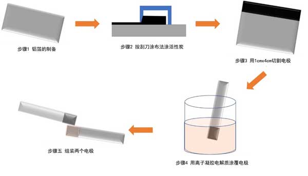 圖1:通過刮刀法制備基于活性炭的全固態超級電容器。
